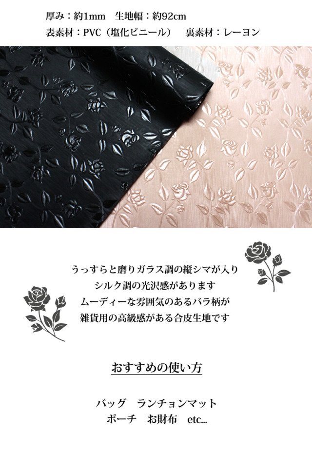 ムーディーな雰囲気のあるバラ柄が高級感のある雑貨用の合皮生地です。