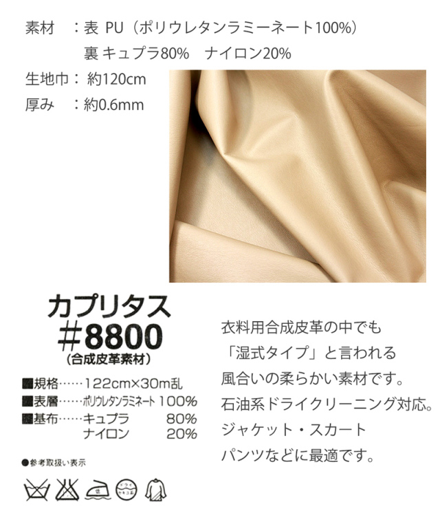 衣料用合成皮革の中でも、湿式タイプと言われる風合いの柔らかいタイプです。