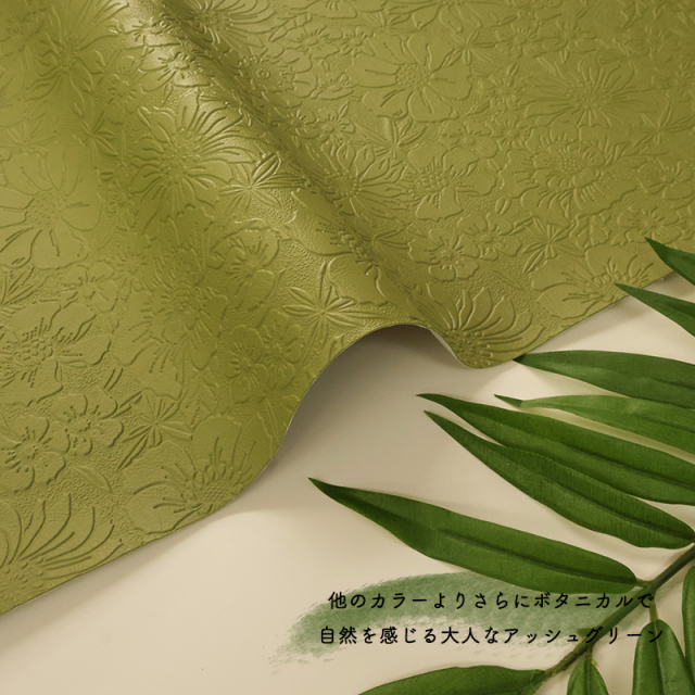銀河工房/50cm単位販売/切り売り/合皮/合成皮革/PVC/エンボス/花柄/フラワー/カラフル/生地/パステル/くすみ/ダスティカラー/ピンク/イエロー/グリーン/アッシュカラー/ボタニカル/自然/ナチュラル