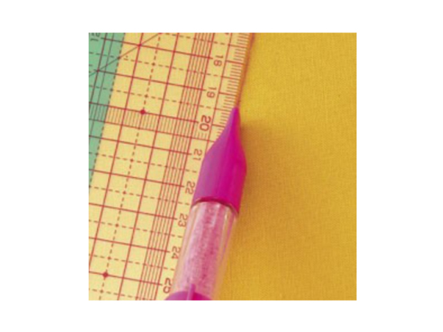 ペンのように持つことができる長さと太さの、粉タイプチャコペンです。先端のギアをまわすことで、内部の粉が布の上に出てきます。