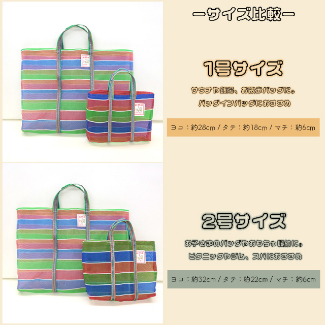 銀河工房/台湾/輸入品/メッシュ素材/サウナバッグ/サウナ/スパ/エコバッグ/レトロ/モダン/ボーダー/ストライプ/アウトドア/温泉/お土産/茄袋/かぎ織み/軽量/6号