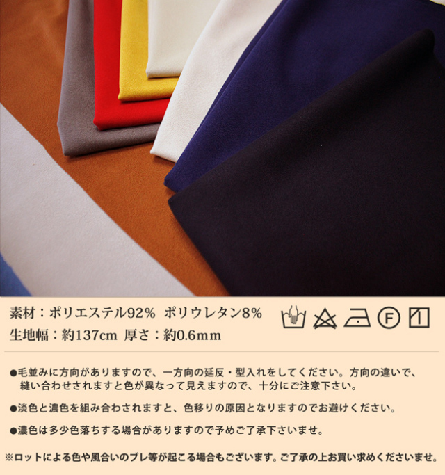 使いやすいカラーとしなやかな人工皮革スエード生地