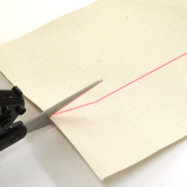 ポインターが案内してくれて、まっすぐ切れる便利なはさみです。