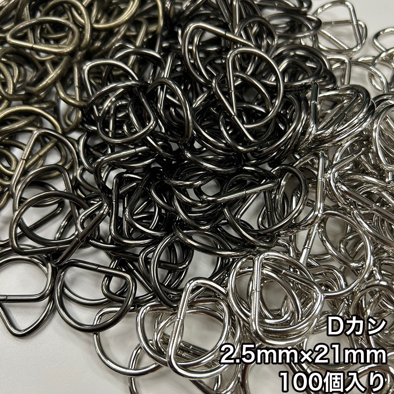 【メール便10個まで】◆Dカン2.5mm×21mm 10個入り(4808)/金具/副資材/手芸/送料対策/ニッケル/アンティークゴールド/ブラックニッケル