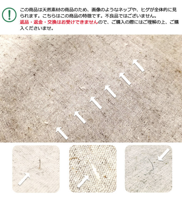 ※本商品は麻混の生機を使用しており、麻本来の素材感を生かした天然素材の生成り生地です。