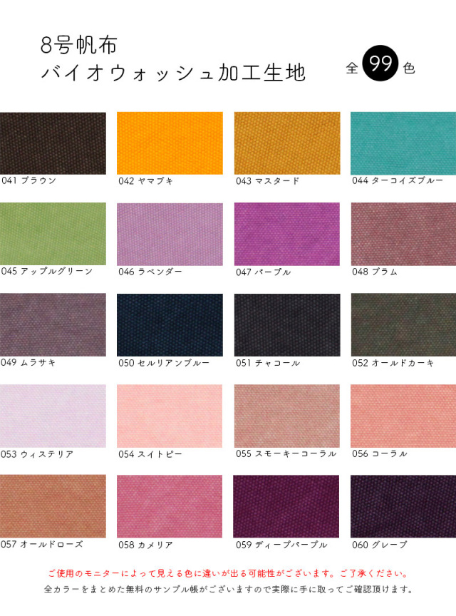 全99色【倉敷帆布】8号バイオウォッシュ加工〔カラーNo.041~080〕(0096-1)【メール便1mまで】 | 無地,生地,帆布,キャンバス,キャンバス地,キャンバス生地,生地,布地,綿,コットン,手作り,ハンドメイド,入園,入学,レッスンバッグ 倉敷